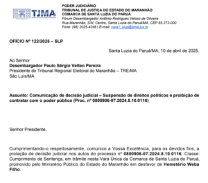 A juíza Patrícia Bastos de Carvalho Correia, da Vara Única de Santa Luzia do Paruá, encaminhou, no fim da tarde desta quinta-feira, 10, ofício