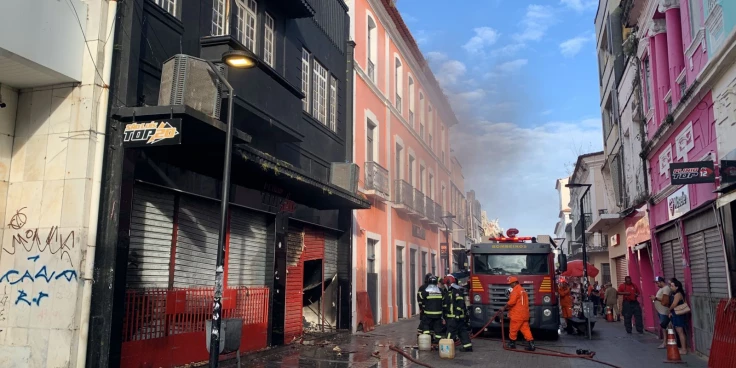 Muita fumaça toma conta do local e atrapalha a visibilidade. A loja de roupas atingida pelo incêndio possui dois pavimentos. As lojas das proximidades ficarão fechadas e, os bombeiros, trabalham para evitar também a propagação do fogo.