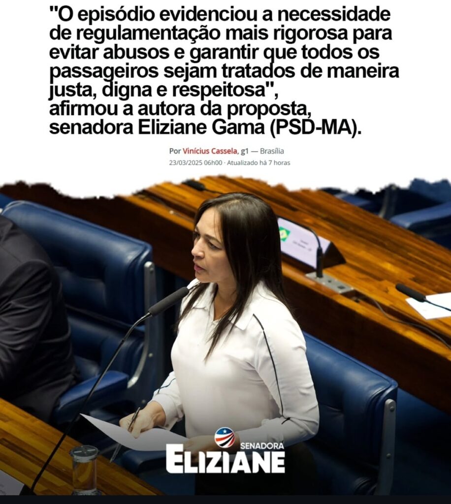 O Senado começa a apreciar na semana o Projeto de Lei da senadora Eliziane Gama (PSD-MA), que tem como objetivo oferecer maior proteção aos passageiros de companhias aéreas. A proposta surge em resposta a incidentes de condutas abusivas, como o ocorrido com a atriz Ingrid Guimarães, que acusou a American Airlines de coação após ser ameaçada e forçada a trocar de lugar em um voo de Nova York ao Rio de Janeiro, em 7 de março. Segundo a atriz, ela foi obrigada a abandonar seu assento na classe econômica premium para beneficiar um passageiro da classe executiva.